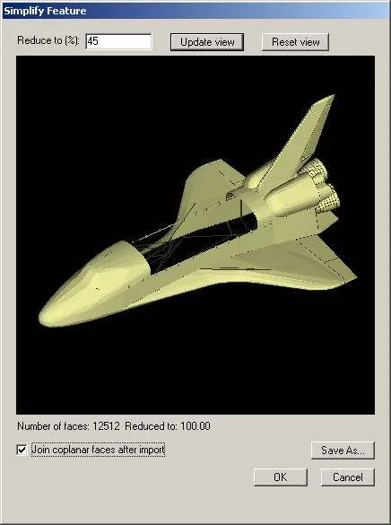 The shuttle model in Figure 1 initially contained about 13,000 faces. Although XGtd projects are capable of containing up to 32,000 faces, CAD files commonly contain excessive details that can prolong calculation times without significantly improving the accuracy of the results.