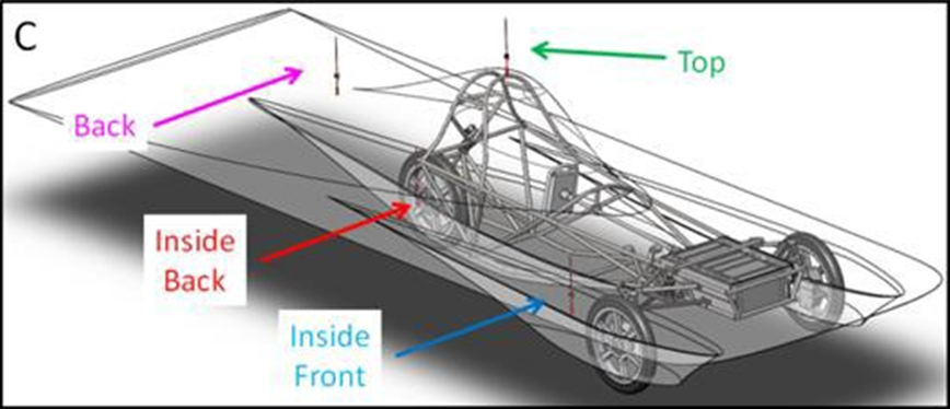 In this paper, FDTD simulations are performed on a 900 MHz band antenna inside and outside the carbon fiber body of a solar-powered electric vehicle. Data are analyzed to determine the optimal antenna placement for transmission to a receiving antenna located toward the rear of the solar vehicle. Modeling data are compared to experimental results. Computational fluid dynamics are used to determine acceptability of external antenna placement. It is found that the ideal antenna would be inside the vehicle’s body and oriented vertically, but that the portion of the body surrounding the antenna must be constructed of a non-conductive material.
