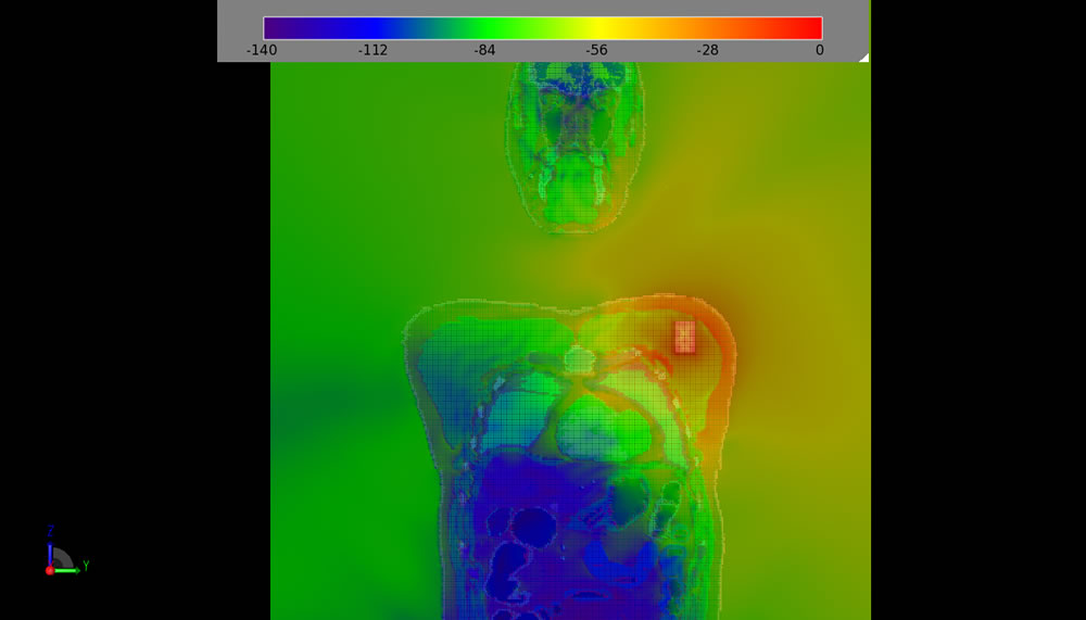 Figure 10: A slice of time domain fields through the chest (body rendering is off).