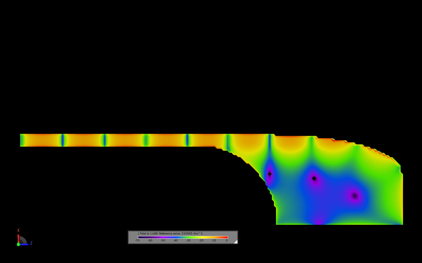 Figure 9: Steady state conduction currents on the outer element of the antenna at 10 GHz.